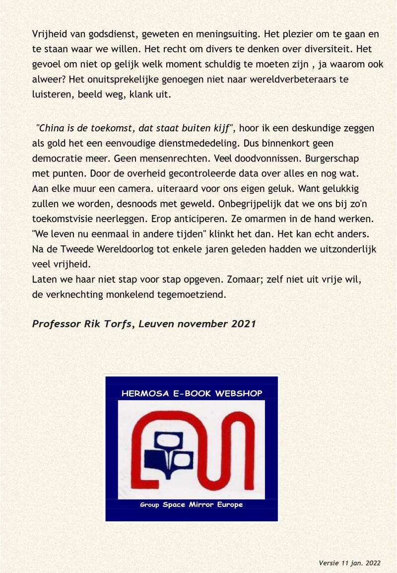 Toespraak door Rik Torf die hij hield op zaterdag 18 maart 2023 bij de ontvangst van de "Prijs voor de Vrijheid",